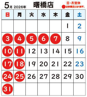 | 2026年5月3日(日)~7日(木)まで休みを頂きます。 休み期間中に頂いたお問い合わせには、8日(金)より順番に対応させて頂きます。 |